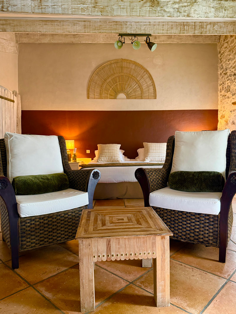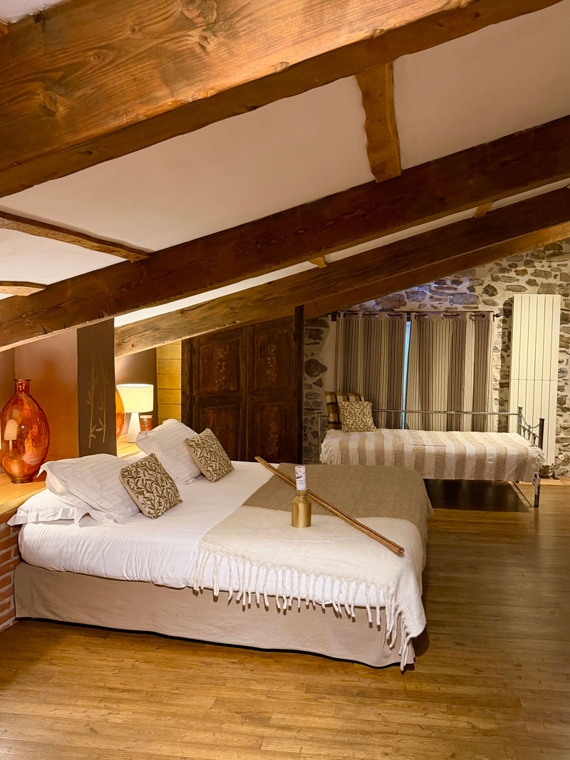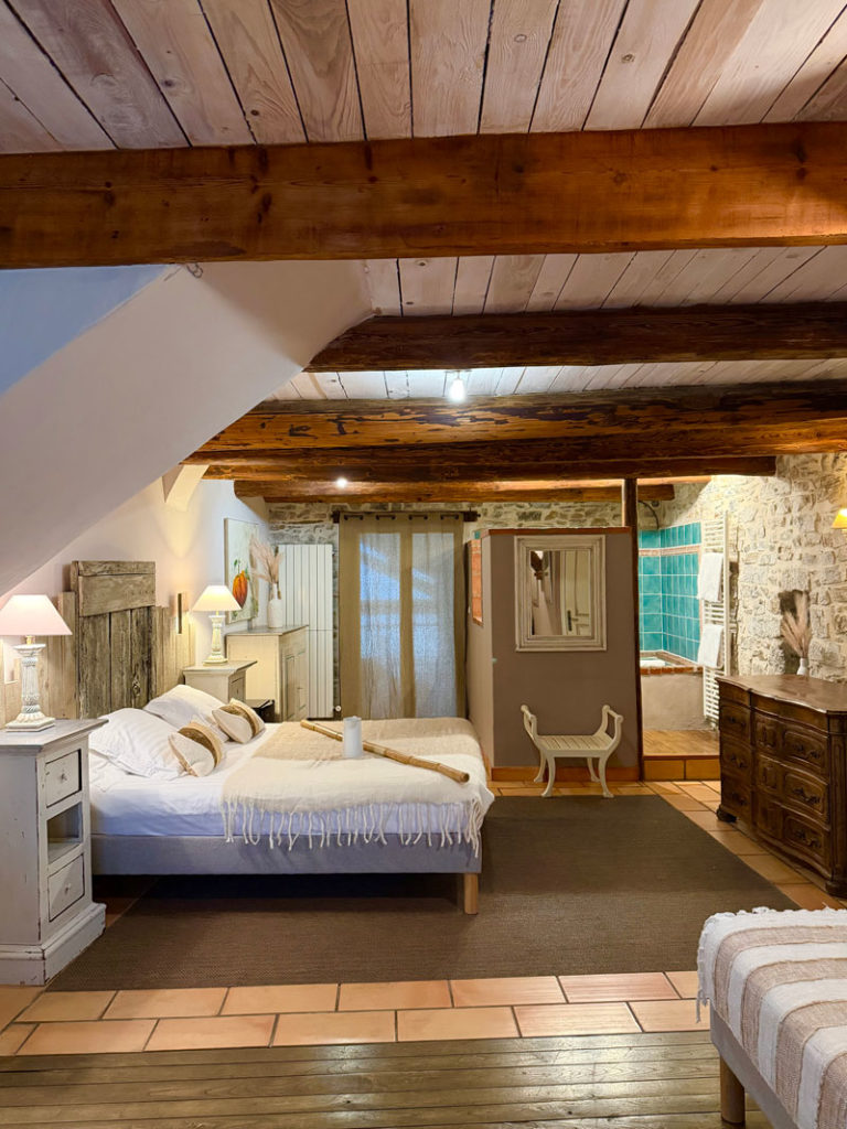 Les 2 chambres portent chacune des noms de cépages : Merlot et Grenache. D’une surface de près de 40 mètres carrés, vous serez charmé par leurs doux coloris propices à la détente. Vous apprécierez aussi leur confort cosy où chaque détail compte : une tête de lit en bois upcyclé, une descente de lit en satin, un bambou délicatement posé en déco…